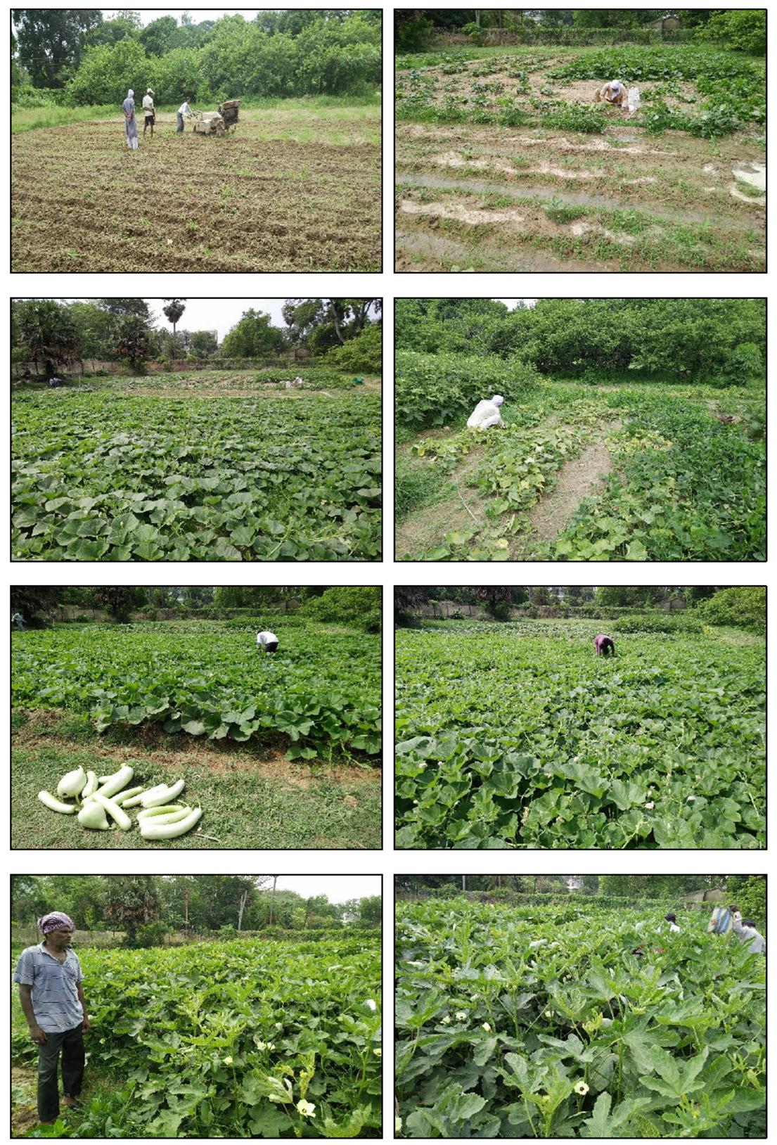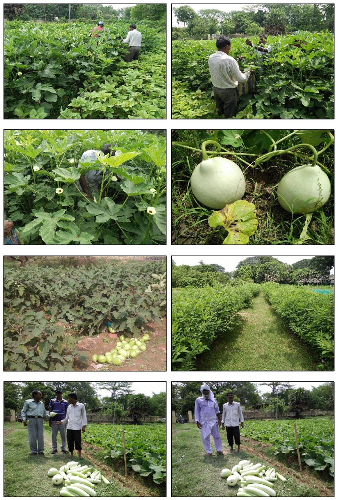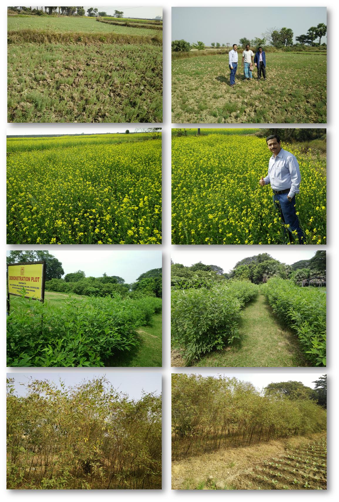 Department of Agricultural Extension has undertaken the demonstrations both at demonstration unit in the institute and villages in Bolpur-Sriniketan and Illambazar blocks involving more than 100 farmers. The under-graduate and post-graduate students are trained and provided an exposure in conduction of demonstration, farmers' need assessment and agro-eco system analysis, etc. The demonstrations are focused on summer season vegetables farming and rabi season vegetables farming in the demonstration unit, which were witnessed by the students and farmers. The nursery of different vegetable crops is raised and seedlings are distributed to the farmers. Field level demonstrations on cultivation of pulses and oilseeds are organised during rabi season covering about 100 famers cultivating about 20 hectare area in 15 villages of Bolpur-Sriniketan and Illambazar blocks in Birbhum district. Under these demonstrations seeds of high yielding varieties of lentil, gram and mustard are given to the farmers to grow the crops in the areas under rice-based cropping systems, where the farmers obtain an average yield of 0.80 t/ha, 0.90 t/ha and 1.20 t/ha in case of lentil, gram and mustard, respectively.